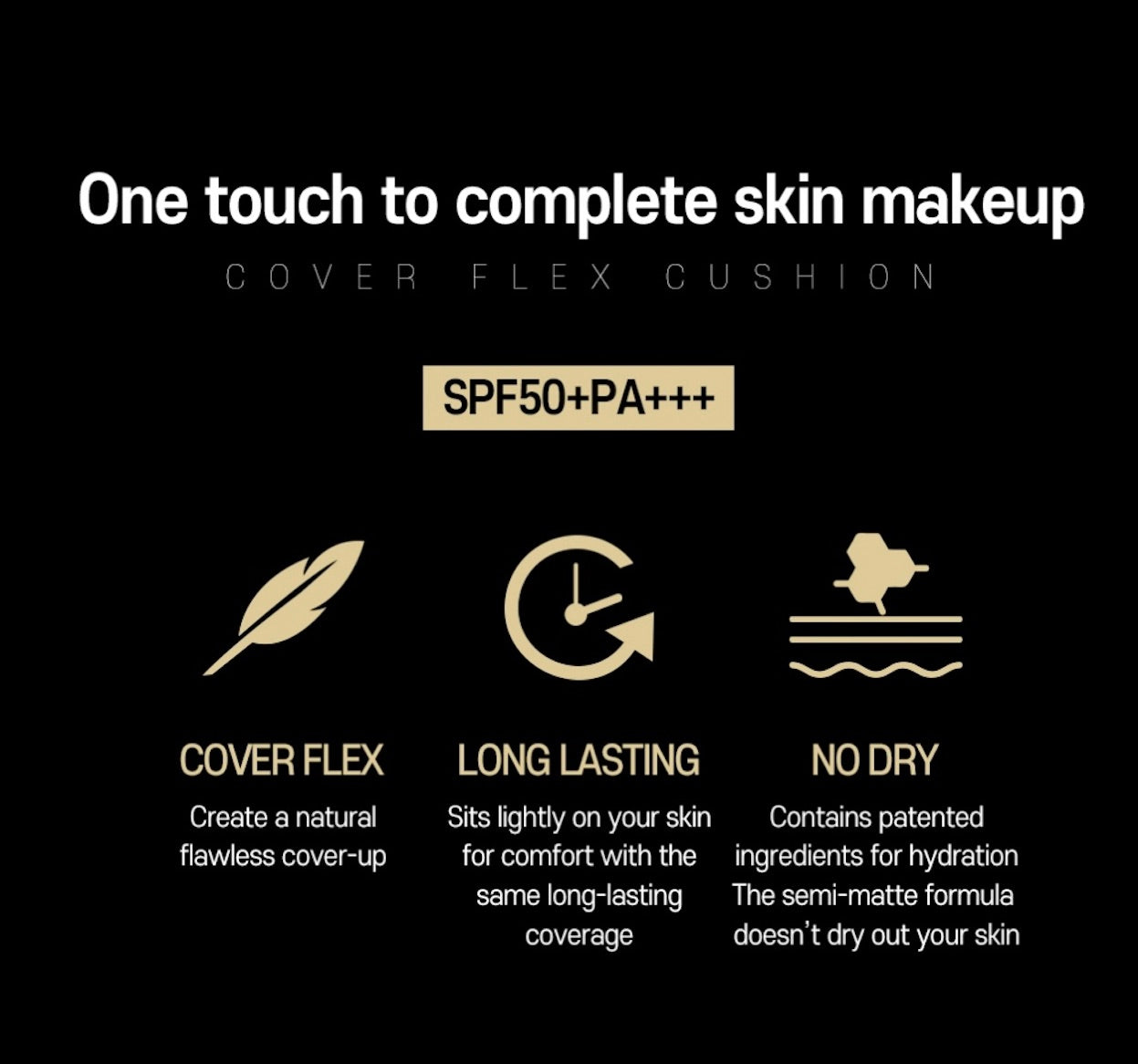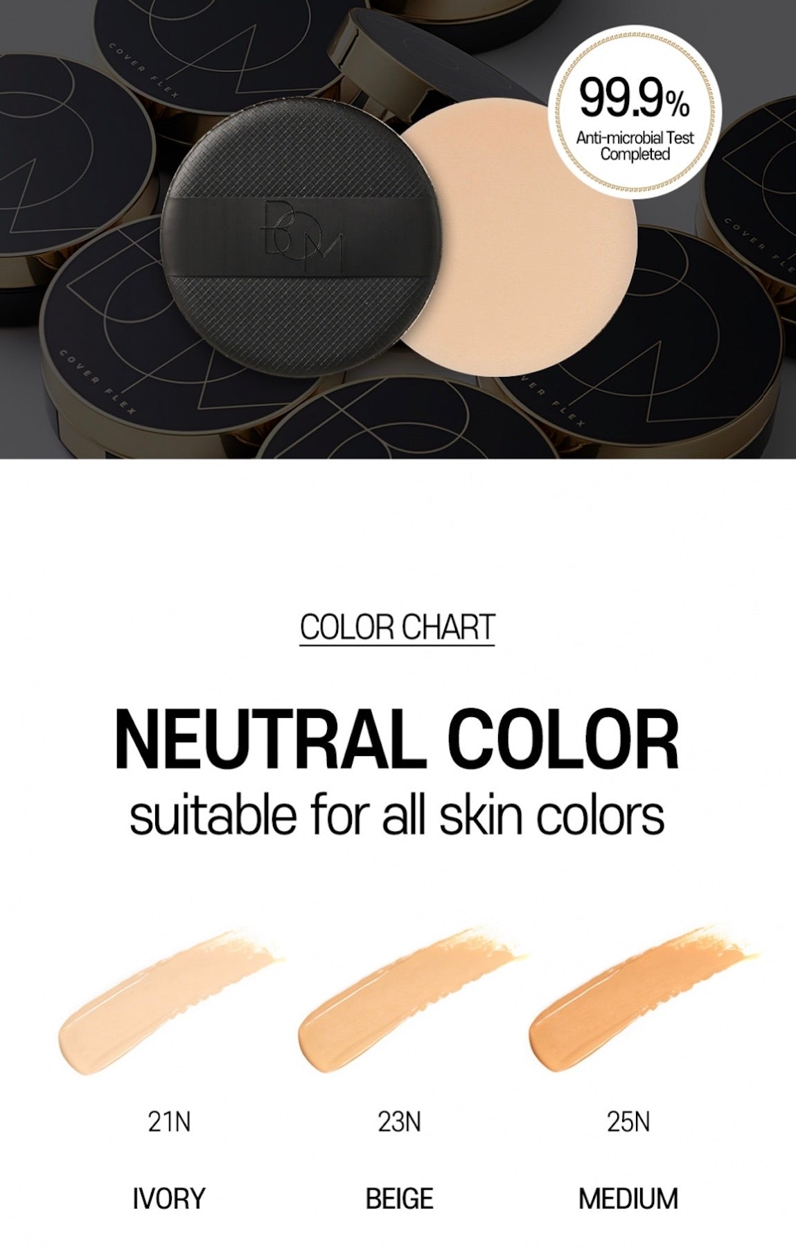 ONE TOUCH MAKEUP CUSHION : BOM Flex Foundation Cushion is a simple, but multi-action cushion that covers, moisturizes and soothes. It creates smooth and seamless skin with a semi-matte coverage.