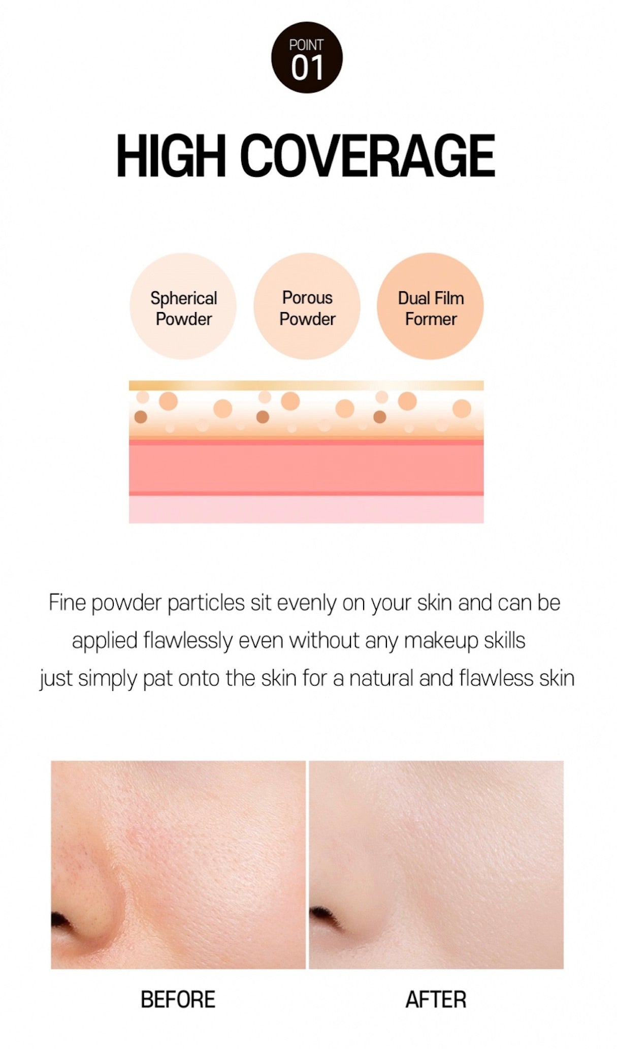 COVER FLEX : Fine and tiny powder particles allow for flawless skin, with a thin but buildable coverage that leaves the skin feeling refreshed.
