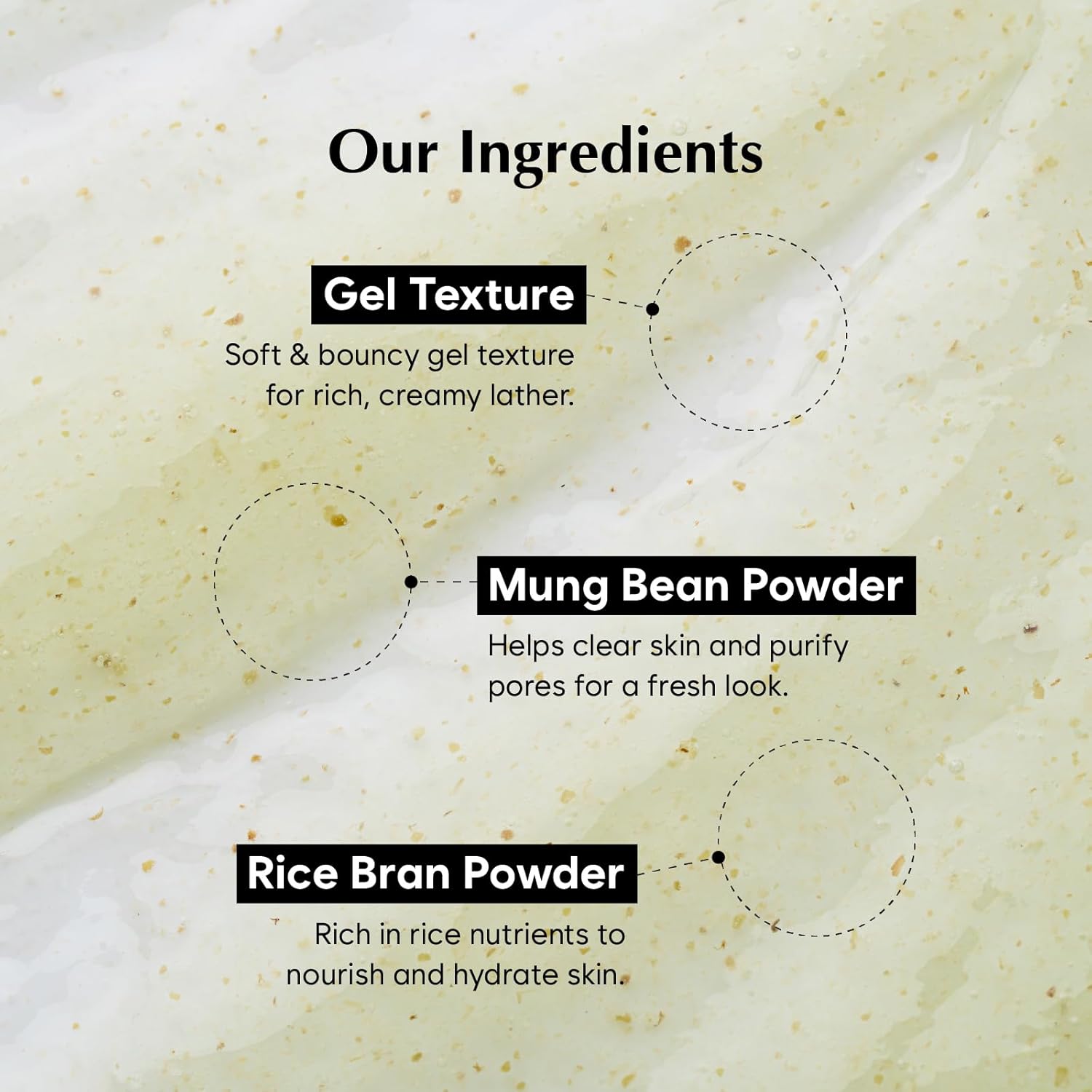 - Natural Exfoliation with Powder Beads – The green gel formula includes finely milled mung bean powder to help remove surface buildup and leave the skin feeling smooth and refreshed.