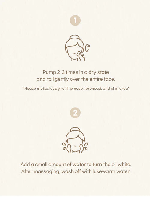 - [How to Use] ① Apply 2-3 pumps of the cleansing oil on dry face and gently massage on areas to be cleansed. ② Add a small amount of water whilst massaging to make the oil turn white. ③ Thoroughly massage and rinse with lukewarm water.