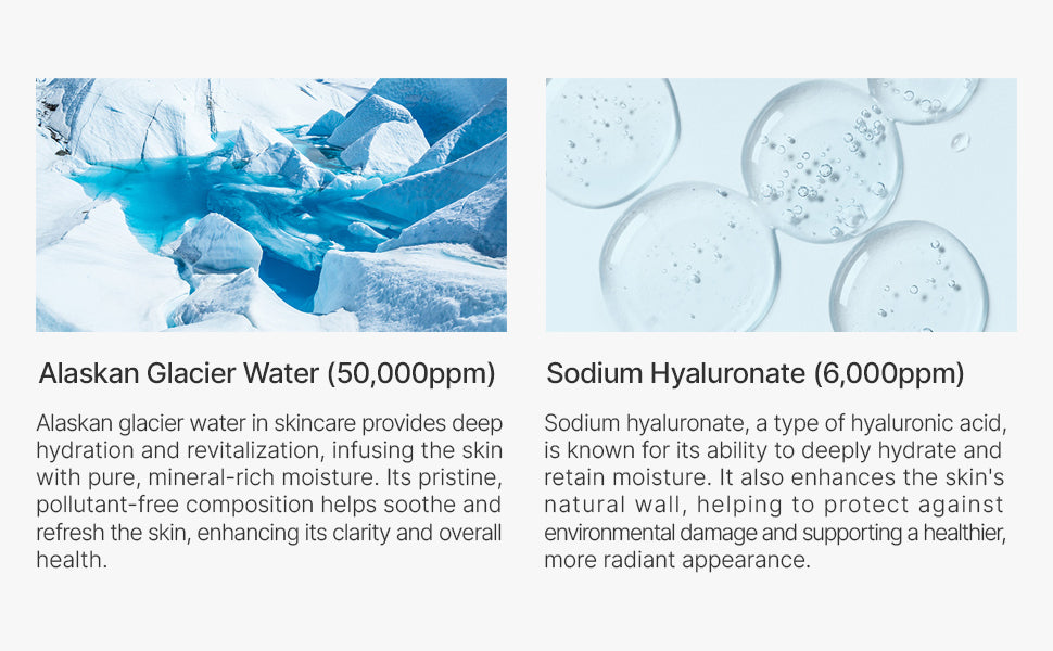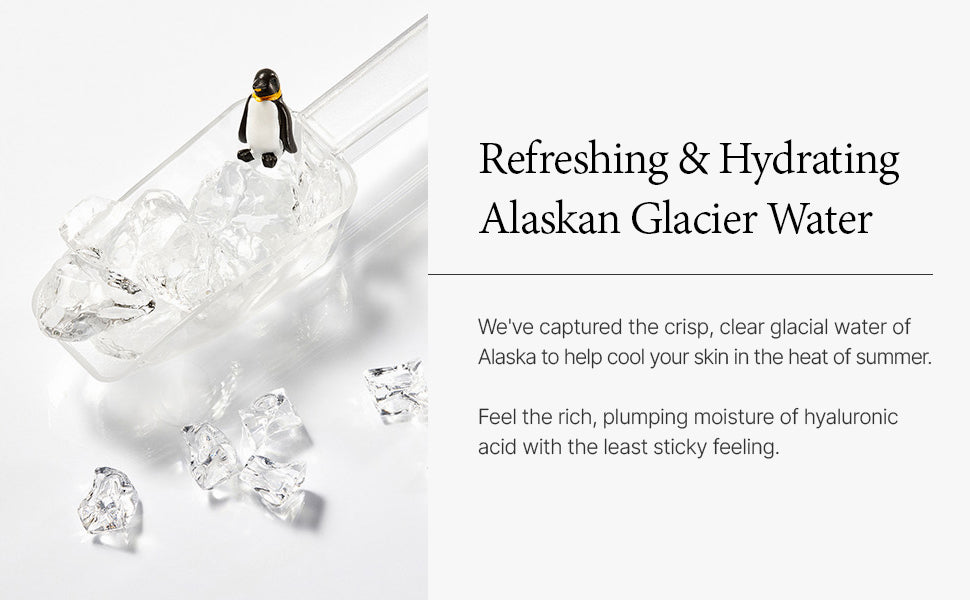 - Infused with glacial water and three types of hyaluronic acid, this serum provides moisture to the skin and helps regenerate skin cells.